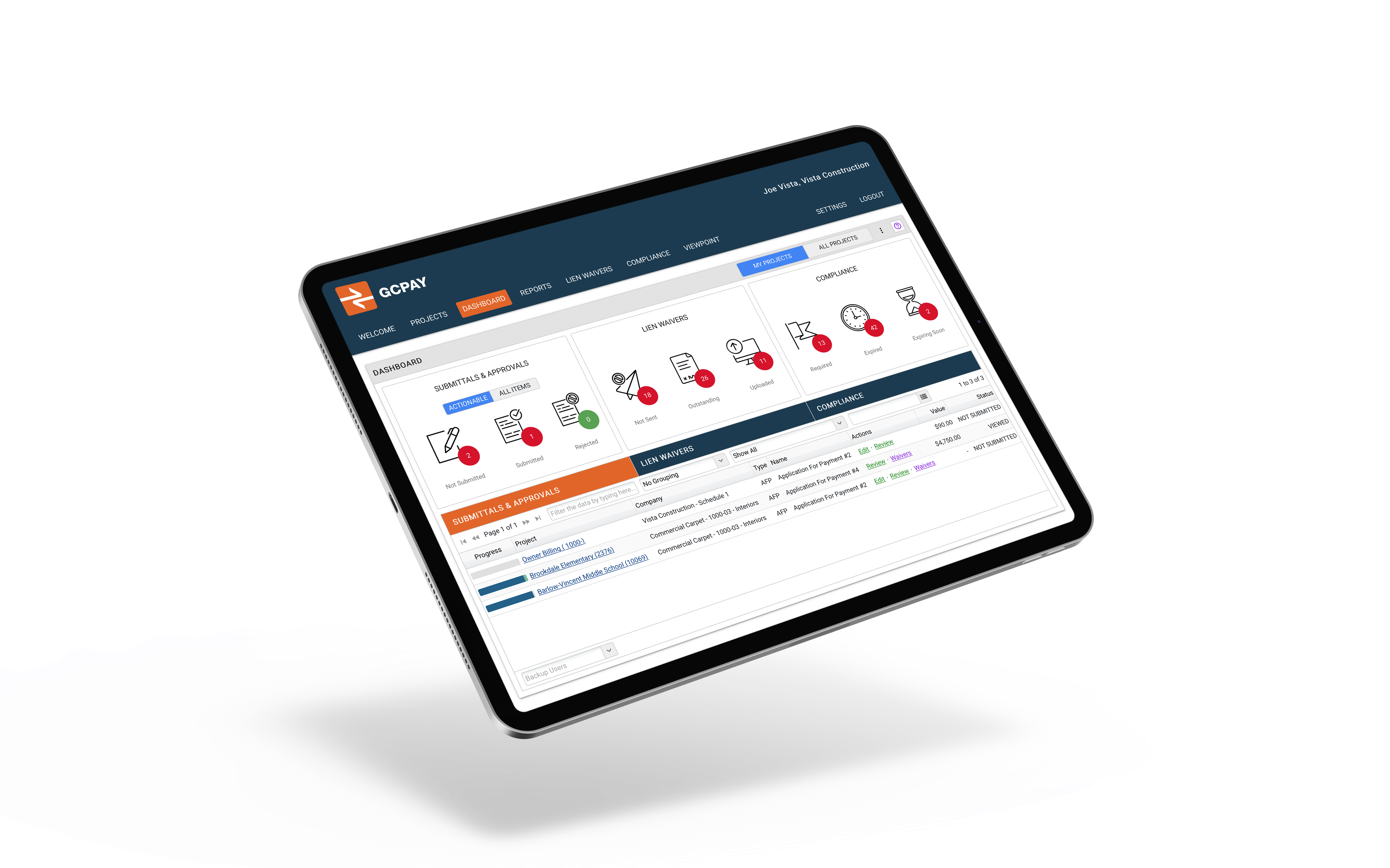 GCPay es un software potente y sencillo que automatiza completamente el proceso de solicitud de pago entre contratistas generales y subcontratistas. Gestione mejor las solicitudes de pago, pague más rápido a los subcontratistas y reduzca el riesgo automatizando el cumplimiento con GCPay.